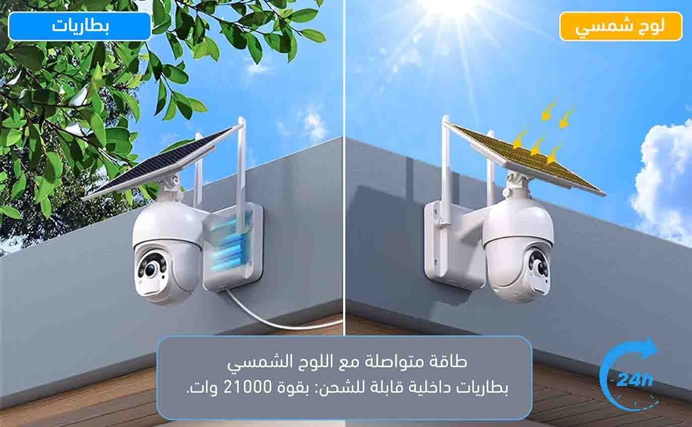 - حجم الكاميرا صغير، واللوح الشمسي يأتي بخيارين في التركيب إما فوق الكاميرا او منفصل وبعيد عن الكاميرا.
