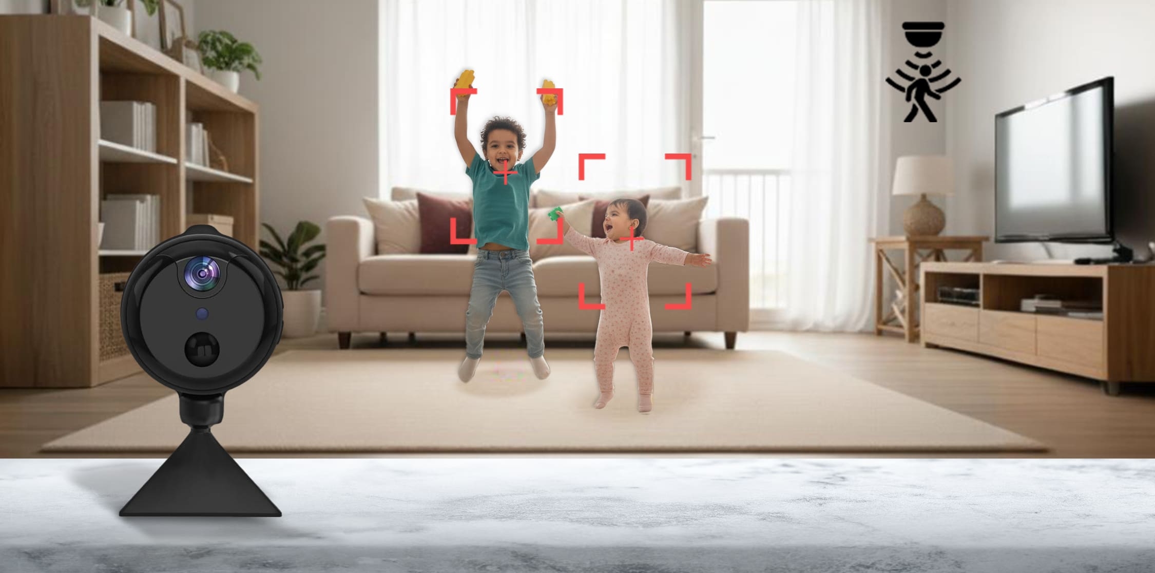 تعمل خاصية مستشعر PIR على رصد أي حركة حتى 5 أمتار وإرسال إشعار فوري إلى هاتفك، مما يضمن مراقبة دقيقة وفعّالة لكل ما يحدث في المنزل.