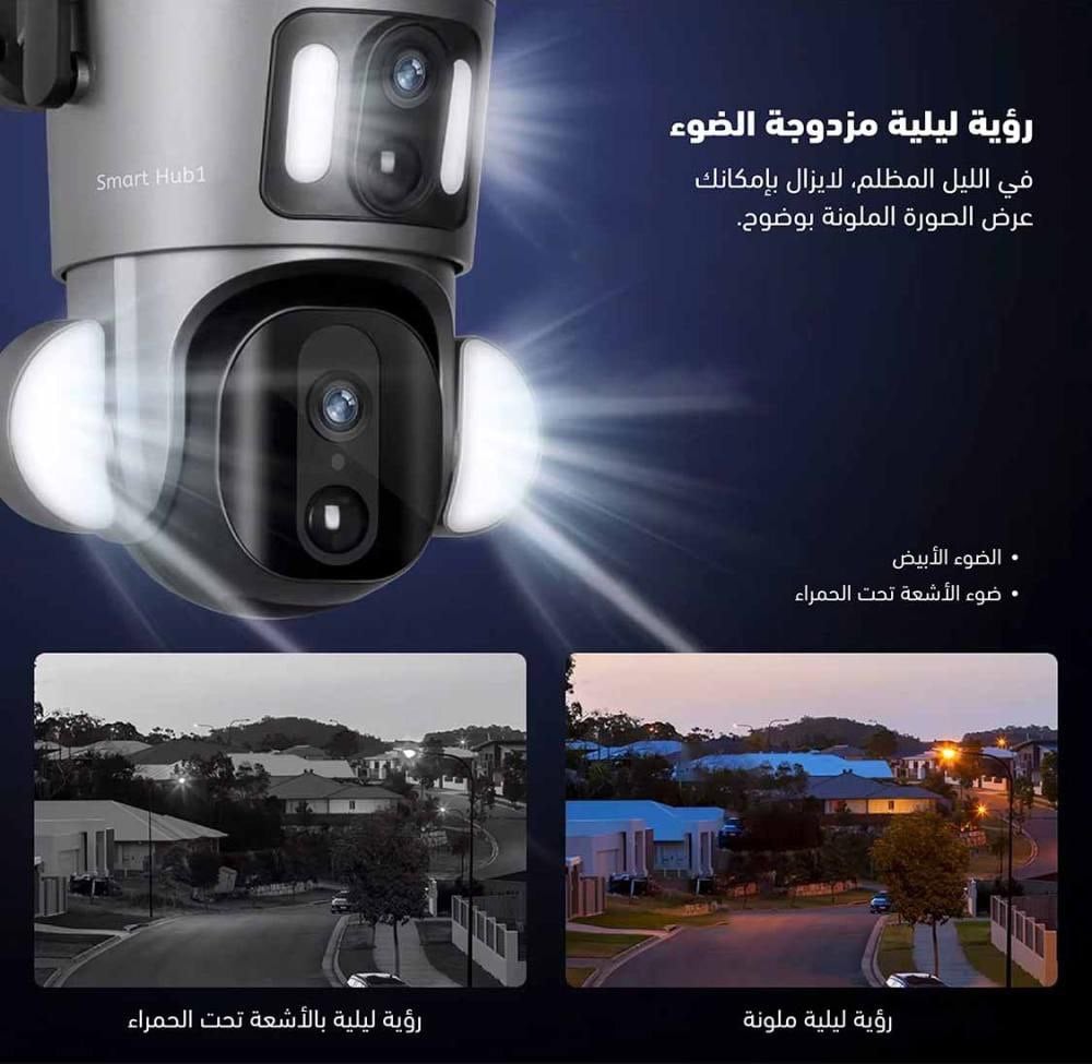 كاميرا سمارت هب 1 تمنحك رؤية لا تُفوّت، بفضل عدسة ثابتة تراقب باستمرار وعدسة PTZ متحركة بدقة 4K، لتتابع أدق التفاصيل من كل زاوية. تدور كاميرا مراقبة طاقة شمسية بمرونة 355° أفقياً و90° عمودياً، ما يتيح لك تغطية مساحة واسعة دون نقاط عمياء، كل ذلك مع تحكّم كامل عن بُعد، وجودة صورة فائقة ترصد كل ما يهمك بوضوح مذهل.