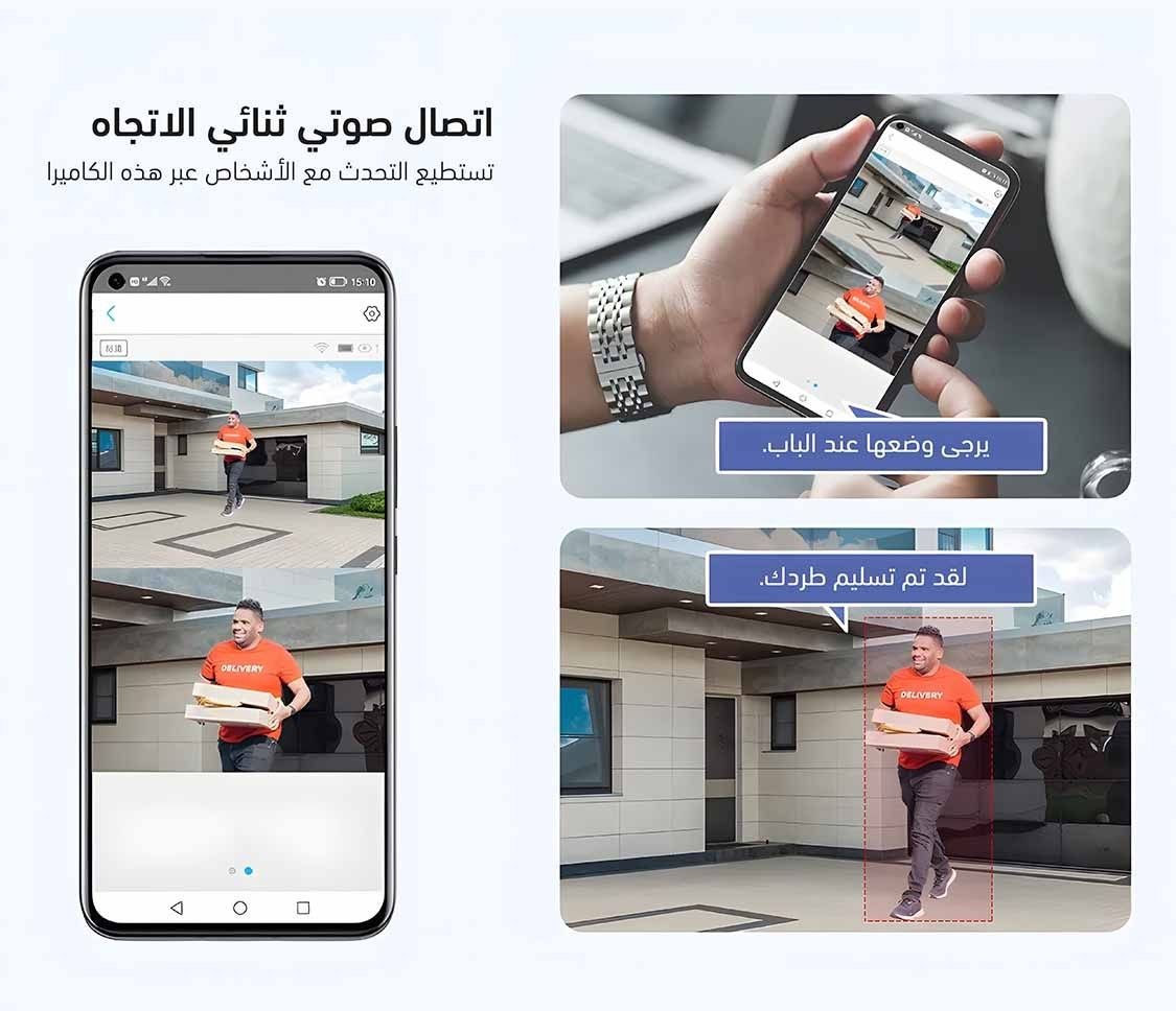 كاميرا سمارت هب 1 مزودة بمايك وسماعة فهي تدعم ميزة الصوت ثنائي الاتجاه، لتتيح لك التواصل الفوري مع من أمام الكاميرا. سواءً كنت ترحّب بضيف أو تحذّر متسللاً، يصل صوتك بوضوح، وتسمع كل ما يجري – لحماية أذكى وتحكم كامل، أينما كنت.