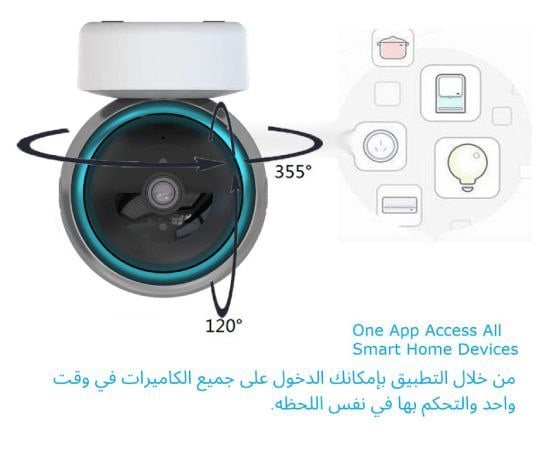 كاميرا سمارت هب 1 هي كاميرا مراقبة داخلية صغيرة الحجم وسهلة التركيب في أي زاوية بمنزلك أو مكتبك، مع قدرة بانورامية على الدوران 360° لتغطي كل تفاصيل المكان ويتم التحكم بذلك من خلال التطبيق ولست بحاجة لتحريكها يدوياً.